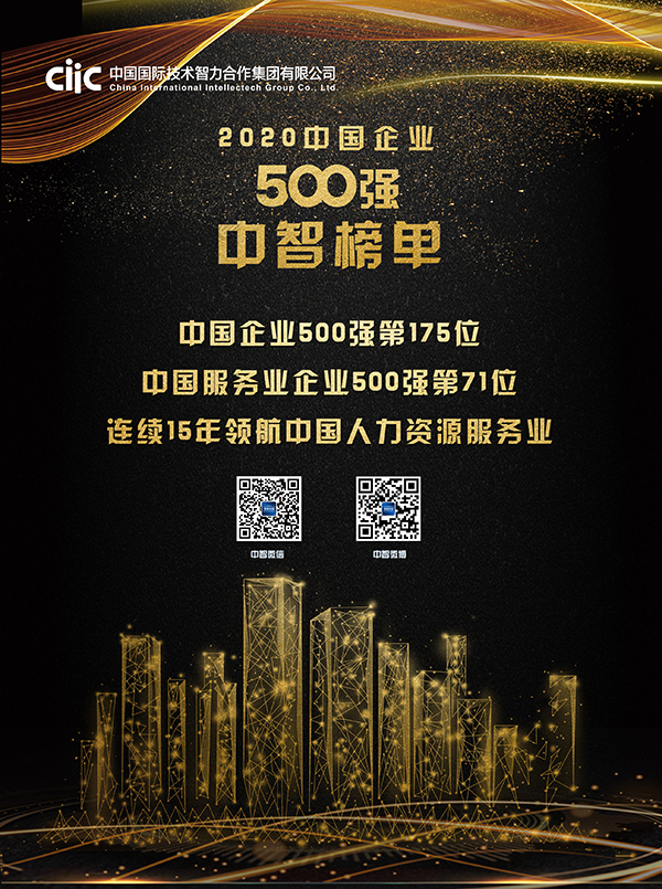 中國國際技術(shù)智力合作集團有限公司(簡稱中智,英文縮寫CIIC),總部位于北京,成立于1987年6月,是國務(wù)院國有資產(chǎn)監(jiān)督管理委員會管理的國有重點骨干企業(yè)(中央企業(yè))。中智作為中國領(lǐng)先的人力資源企業(yè),是一家主營人力資源業(yè)的中央企業(yè)。中智擁有六大業(yè)務(wù)板塊以及投融資平臺、文化傳播平臺,以人力資源外包、人力資源管理咨詢、招聘獵頭靈活用工及BPO、培訓、國際人力資源服務(wù)(含對外勞務(wù)合作、商事服務(wù))、技術(shù)貿(mào)易業(yè)務(wù)六大板塊為主業(yè),創(chuàng)新發(fā)展知識產(chǎn)權(quán)等與人力資源主業(yè)相關(guān)度高、國家戰(zhàn)略高度關(guān)注的新興智力服務(wù)領(lǐng)域,增進作為國家智庫的影響力。中智以創(chuàng)新轉(zhuǎn)型、變革發(fā)展,人力資源與科技的深度融合,描繪“智領(lǐng)中國”新藍圖。