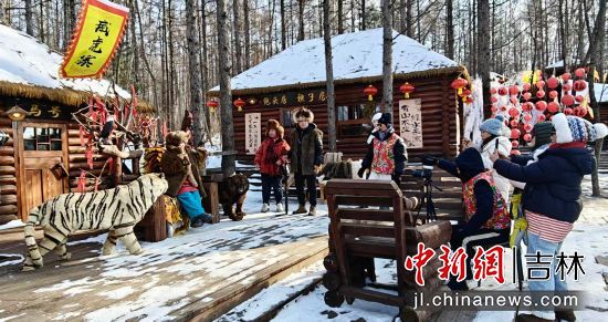愛(ài)心玫瑰與雪人谷成為打卡熱點(diǎn),百余個(gè)創(chuàng)意雪人錯(cuò)落分布,雪雕玫瑰形態(tài)各異,游客爭(zhēng)相合影。關(guān)東文化園威虎山土匪寨角色扮演區(qū)人氣爆棚,游客換上土匪服飾,手持道具槍模擬“打土匪”互動(dòng),笑聲與吶喊聲中重現(xiàn)歷史場(chǎng)景。“這比單純滑雪更有意思!”游客王先生興奮地表示,“土匪寨體驗(yàn)讓我仿佛穿越回關(guān)東時(shí)代,文化元素讓冰雪活動(dòng)更鮮活!
