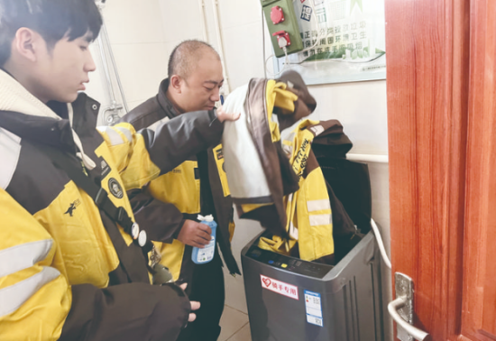 1月19日一早,記者走進(jìn)服務(wù)驛站時,已有幾位騎手在此休息。干凈整潔的床鋪、沙發(fā)、桌椅,晾衣架、飲水機(jī)、微波爐、礦泉水、應(yīng)急藥品等一應(yīng)俱全。“這個服務(wù)驛站特別好,旁邊就是美團(tuán)的工作站點(diǎn),每天開完早會或者不忙時,我們都會來這休息,吃個飯、喝口水,告別風(fēng)餐露宿。衣服臟了還可以用洗衣機(jī)洗,特別省心,就像家一樣!蓖赓u員郭蕊說。