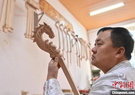白蘇古郎介紹,最早的琴頭不一定是馬頭,也雕有獸頭、龍頭的。因為這個緣故,他嘗試在馬頭琴雕刻龍頭,竟出乎意料地受顧客喜愛。“這不是為了應(yīng)龍年的景做的,龍是中華民族的圖騰,在馬頭下面加上龍頭,寓意為‘龍馬精神’,這是中華民族的精神內(nèi)核之一!