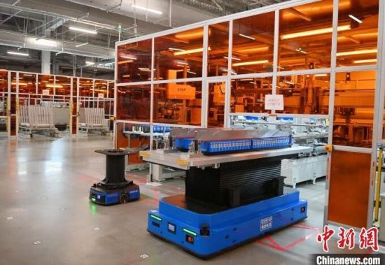 AGV配送車(chē)在運(yùn)送電芯。張瑤 攝