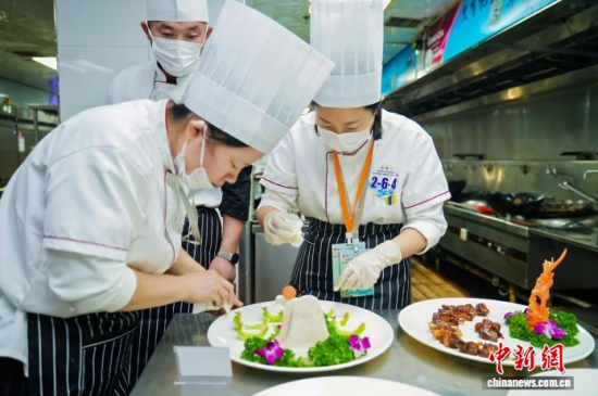 當天上午,多支代表隊在后廚忙碌,操作臺上,參賽廚師依照藥膳指導師開具的方子,將精選的人參等藥材進行預處理,再與母雞、松花江魚等主料一同入鍋!斑@道湯適合體虛者,我們控制了人參用量,確保其口味和養(yǎng)生功效!币晃贿x手介紹。