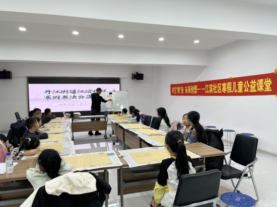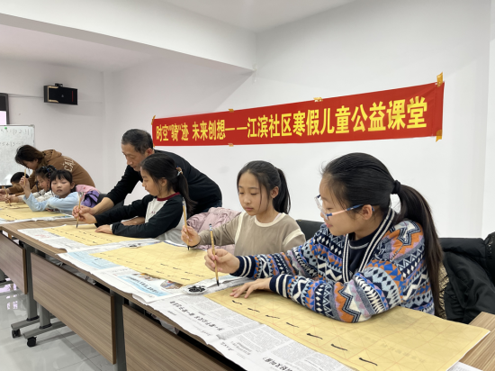 翰墨飄香潤(rùn)育童心,筆走龍蛇書(shū)寫(xiě)成長(zhǎng)。江濱社區(qū)黨委以傳承中華優(yōu)秀傳統(tǒng)文化為抓手,依托書(shū)法公益課堂搭建文化傳承平臺(tái),以筆墨傳文化、以書(shū)香育新人。一是名師領(lǐng)航夯基礎(chǔ)。邀請(qǐng)轄區(qū)書(shū)法教師段老師現(xiàn)場(chǎng)授課,以專(zhuān)業(yè)教學(xué)助力孩子們感受書(shū)法魅力、傳承優(yōu)秀文化;二是循序漸進(jìn)長(zhǎng)才干。段老師從握筆姿勢(shì)、基本筆畫(huà)教起,聚焦楷書(shū)基礎(chǔ),通過(guò)示范指導(dǎo)、一對(duì)一糾正,幫助孩子們?cè)鷮?shí)掌握書(shū)寫(xiě)技巧,培養(yǎng)持之以恒的韌勁、嚴(yán)謹(jǐn)認(rèn)真的態(tài)度、精益求精的追求;三是以書(shū)潤(rùn)心強(qiáng)自信。結(jié)合書(shū)寫(xiě)春聯(lián)、福字等形式,與孩子們一同揮毫潑墨,讓孩子們?cè)诠P墨間體悟傳統(tǒng)文化的博大精深,在書(shū)寫(xiě)中根植文化自信,在傳承中凝聚民族力量,推動(dòng)中華優(yōu)秀傳統(tǒng)文化在青少年中薪火相傳。