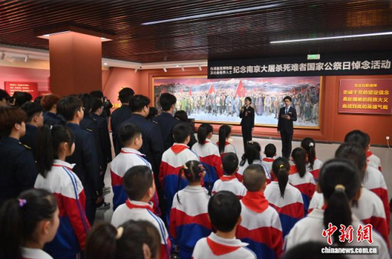 12月13日,吉林長春,民眾參觀“艱苦卓絕十四年——東北人民抗戰(zhàn)史實陳列”。當天是南京大屠殺死難者國家公祭日,長春各界人士來到偽滿皇宮博物院暨東北淪陷史陳列館,悼念南京大屠殺死難同胞和抗戰(zhàn)英烈。 中新社記者 張瑤 攝