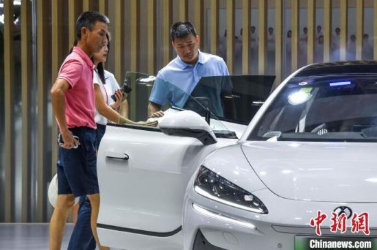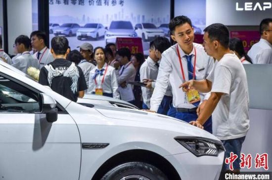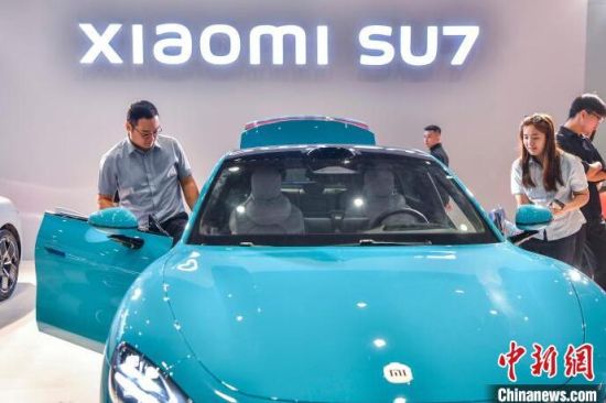 9月13日,海南?冢嚹V嚭D辖鹎镘囌。當日,因超強臺風“摩羯”而兩度延期的2024海南金秋車展暨智能網(wǎng)聯(lián)新能源車展在?谂e行。作為臺風災后海南的首場車展,本次展出面積達5萬平方米,共有近百個汽車品牌參展,其中新能源車型占比70%。中新社記者 駱云飛 攝