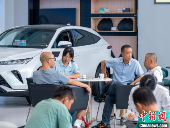 6月3日,廣西梧州市一汽車專賣(mài)店內(nèi),顧客在了解選購(gòu)車型并咨詢汽車“以舊換新”補(bǔ)貼政策。今年以來(lái),梧州市汽車消費(fèi)市場(chǎng)持續(xù)活躍,成為拉動(dòng)消費(fèi)增長(zhǎng)重要引擎,新能源汽車成消費(fèi)亮點(diǎn)。眾多車企推出優(yōu)惠補(bǔ)貼,疊加國(guó)家和地方補(bǔ)貼政策,加大購(gòu)車優(yōu)惠力度,吸引消費(fèi)者進(jìn)店咨詢選購(gòu)、試乘試駕,助推銷量穩(wěn)步提升。何華文 攝