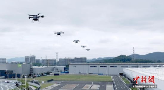 3月5日,匯天飛行汽車量產(chǎn)工廠,多機試飛進行性能驗證。(小鵬匯天供圖)