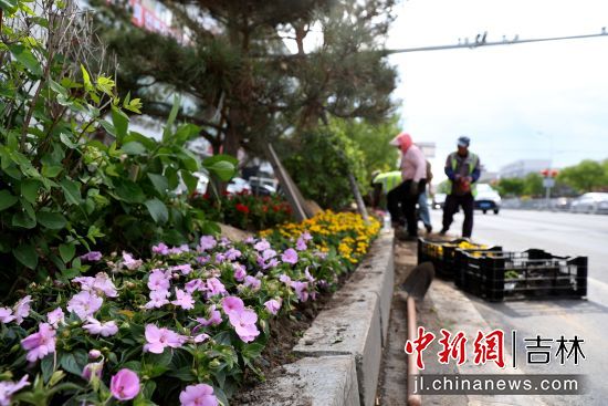 5月25日,記者在河南街與長白山西路交匯路段看到,園林工人正在緊張有序地栽種花苗,鮮花成片鋪展,紅黃相間,美不勝收。正在散步的市民王女士一邊駐足觀賞一邊拍照留念,她說:“這些花開得真美,走在街上都覺得心情特別好!