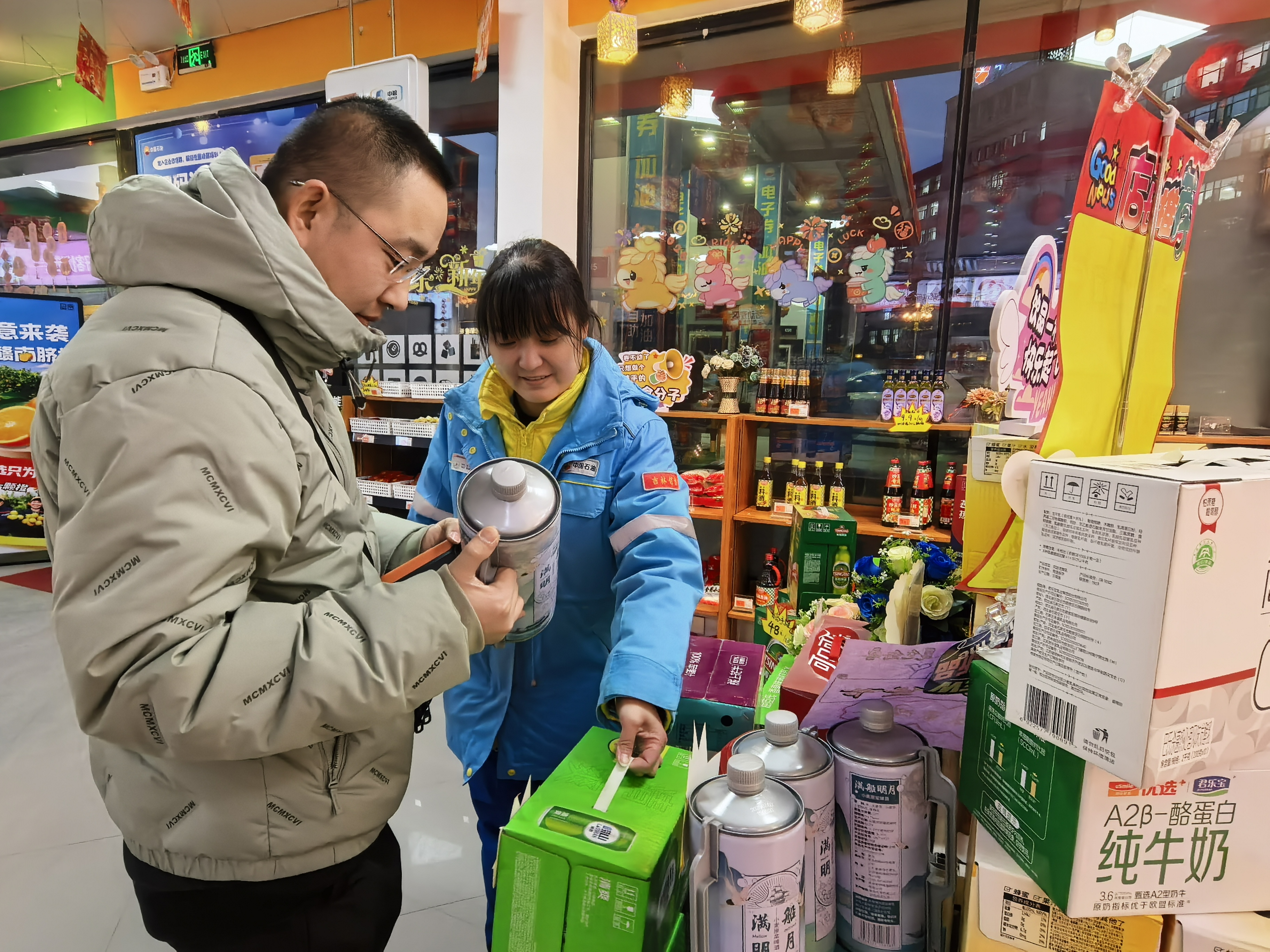 四平分公司雙遼片區(qū)加油站的“寒路護(hù)航”專區(qū),防凍玻璃水、防凍液、昆侖潤滑產(chǎn)品排排站,還有貼心的使用示意圖,方便車主快速選擇!耙郧胺植磺宸纼鲆盒吞枺陠T耐心講完還推薦了組合優(yōu)惠,太貼心了!避囍魍跖窟B連點(diǎn)贊。暖飲區(qū)里,熱咖啡、熱茶飲氤氳著香氣,一口熱飲下肚,寒氣瞬間被驅(qū)散。吉林市分公司城區(qū)站多備高端禮盒、方便簡餐,適配上班族和商務(wù)客的快節(jié)奏需求;城鄉(xiāng)結(jié)合站囤足米面糧油和應(yīng)季農(nóng)具,承包民生所需;旅游沿線站專設(shè)“吉字號特產(chǎn)專區(qū)”,鮮食玉米憑香甜口感成爆款,一口下去滿是谷物本味,精準(zhǔn)戳中不同需求。