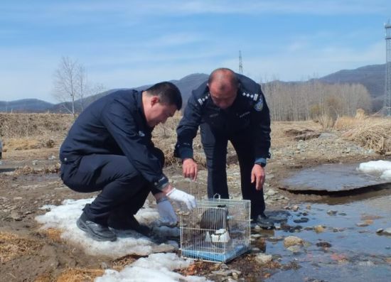 民警準(zhǔn)備放生白骨頂雞 樺甸森林公安分局/供圖