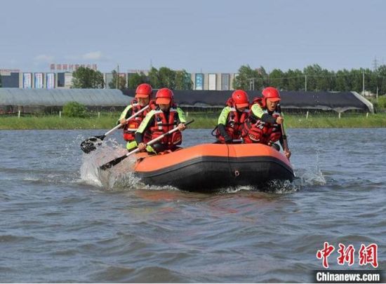 森林消防員正在進行水上救援科目訓(xùn)練。