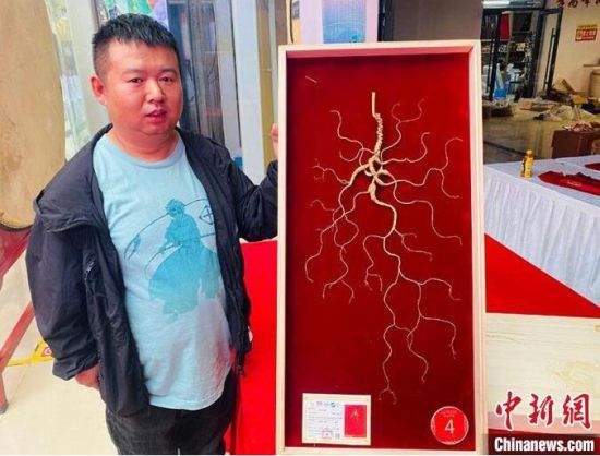 據(jù)了解,脫穎而出的“野山參王(干品)”有著百年參齡,主人是來自吉林省白山市的參商張雯溥!斑@次帶來的野山參五形特別好,皮老紋深,參須柔韌性強,有彈性,蘆、紋、體、皮色、須可以說都屬上乘!