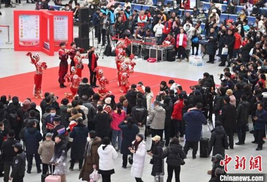 1月26日,在長(zhǎng)春站候車大廳,長(zhǎng)春站、沈陽(yáng)鐵路公安局長(zhǎng)春公安處等多個(gè)部門聯(lián)合為旅客帶來了系列精彩表演, 吸引大批過往旅客駐足觀看、參與。當(dāng)天,2024年春運(yùn)啟動(dòng)。2024年春運(yùn)自1月26日開始至3月5日結(jié)束,為期40天。春運(yùn)期間,長(zhǎng)春站預(yù)計(jì)發(fā)送旅客341萬人次,日均8.5萬人次。(完)