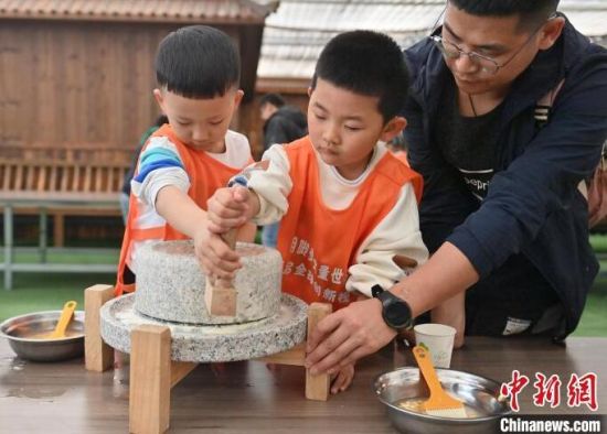 近來(lái),鄉(xiāng)村農(nóng)事研學(xué)活動(dòng)在長(zhǎng)春頗受歡迎。4月27日,在長(zhǎng)春市陳家店村,萌娃們紛紛化身“小農(nóng)人”,通過(guò)磨豆?jié){、采摘水果、參觀勞作工具等活動(dòng)體驗(yàn)農(nóng)事樂(lè)趣,親近自然。