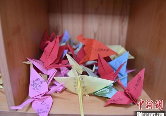 這些千紙鶴是轄區(qū)學(xué)生們送來的禮物,每個千紙鶴上面都有一句祝福的話,讓“木蘭警務(wù)團(tuán)”的女警們十分感動!埇 攝