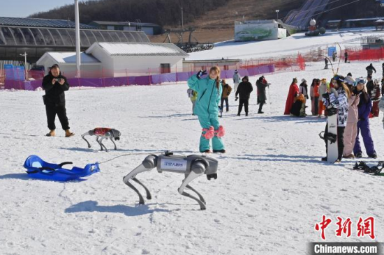 11月22日,在長(zhǎng)春蓮花山滑雪場(chǎng),機(jī)器狗在和小游客互動(dòng)。當(dāng)天,長(zhǎng)春蓮花山滑雪場(chǎng)開(kāi)板,新上崗的6只機(jī)器狗憑借著新式“狗”拉爬犁出盡風(fēng)頭,惹得中外游客爭(zhēng)相合影。據(jù)悉,除了與游客互動(dòng),機(jī)器狗還能承擔(dān)物資運(yùn)送、急救和安全巡邏等多種服務(wù)任務(wù)。中新社記者 張瑤 攝
