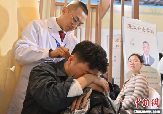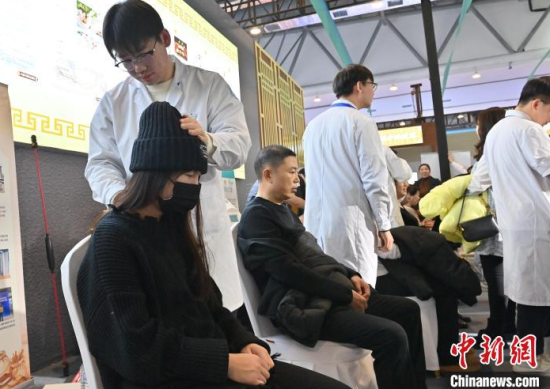 12月7日,吉林長春,市民在體驗推拿。當(dāng)天,2024長春國際醫(yī)藥健康產(chǎn)業(yè)博覽會開幕,現(xiàn)場設(shè)有中醫(yī)藥文化體驗展區(qū)、中醫(yī)流派特色療法體驗館,吸引大批市民前來觀展、體驗。中新社記者 張瑤 攝
