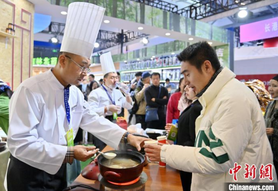 12月7日,吉林長春,市民在品嘗人參藥膳。當(dāng)天,2024長春國際醫(yī)藥健康產(chǎn)業(yè)博覽會(huì)開幕,在人參展區(qū),展示了百年野山參、人參藥膳及人參深加工產(chǎn)品。中新社記者 張瑤 攝