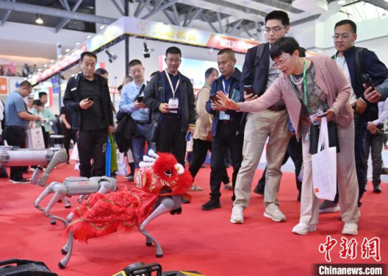 5月23日,第63屆高等教育博覽會(簡稱“高博會”)在長春開幕。本屆高博會由展覽展示與特色活動兩部分組成。其中,展覽展示面積12萬平方米,參展院校和企業(yè)6000余家。圖為高博會展覽現(xiàn)場,智能人形機器人吸引參觀者。中新社記者 張瑤 攝