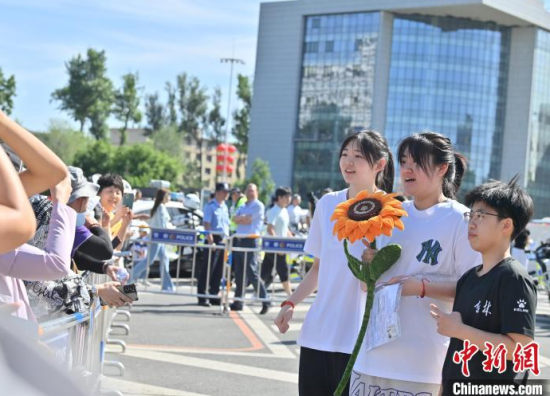 6月7日,吉林省長春市,在吉林省實驗中學(xué)考點,考生拍照留念。當(dāng)日,2025年全國高考拉開帷幕。中新社記者 張瑤 攝