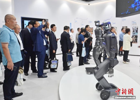 9月30日,吉林長春,參觀者觀看科技文旅機(jī)器人。當(dāng)天,吉林省仿生機(jī)器人創(chuàng)新中心應(yīng)用示范基地于吉林省長春市揭牌,全國首家“仿生機(jī)器人MALL”也在同期開幕。該基地集展示、體驗(yàn)、科普、銷售等功能于一體,致力于打造沉浸式科技消費(fèi)新地標(biāo)。中新社記者 張瑤 攝
