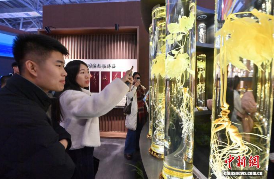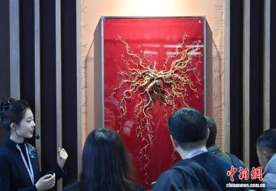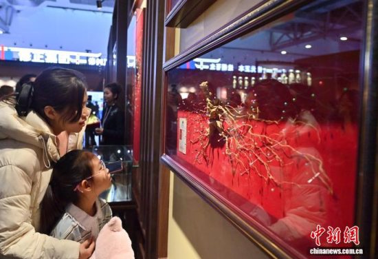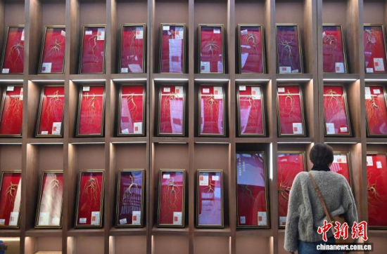 12月7日,吉林長(zhǎng)春,參觀者在參觀人參。當(dāng)日,2025長(zhǎng)春國(guó)際醫(yī)藥健康產(chǎn)業(yè)博覽會(huì)開(kāi)幕,具有當(dāng)?shù)靥厣那暌吧絽ⅰ⑷藚?biāo)本在人參展區(qū)展出,吸引了參觀者的目光。中新社記者 張瑤 攝