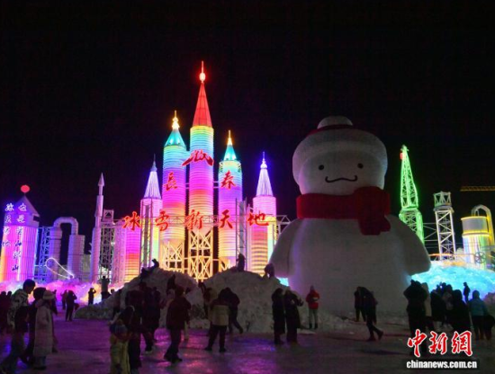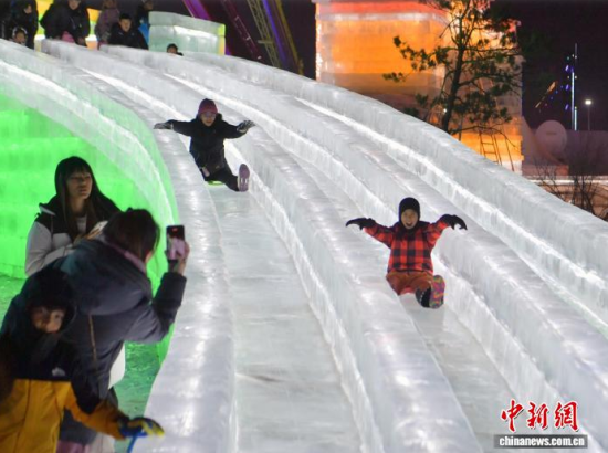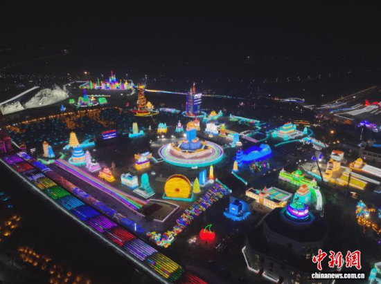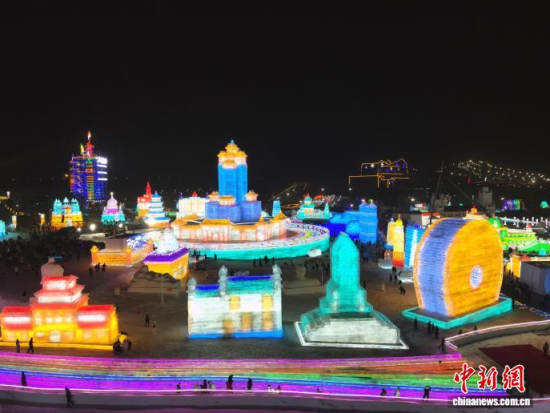 12月19日晚,長春冰雪新天地開門迎客。2025-2026雪季的長春冰雪新天地占地面積156萬平方米,開發(fā)了76萬平方米的冰雪游樂空間,總用冰用雪量達(dá)85萬立方米,冰雪雕塑200余座。隨著夜幕降臨,冰雕景觀亮燈,整個園區(qū)仿佛一座如夢如幻的冰雪王國。中新社記者 張瑤 攝