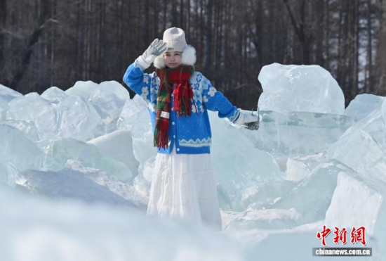 2月9日,在長春凈月潭國家森林公園內(nèi),由水庫天然冰塊堆砌而成的“藍冰”景觀,吸引市民打卡拍照!八{冰”是指致密堅硬的冰,因冰內(nèi)部空氣被擠掉而變得晶瑩透徹,這時陽光中波長較短的藍光被致密堅厚的冰層散射,冰塊便呈現(xiàn)出水晶般美麗的藍色。中新社記者 張瑤 攝