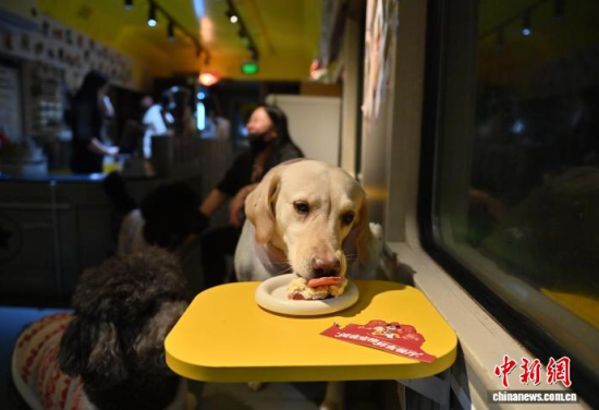 2月11日,吉林長春,小狗在火車車廂主題寵物餐廳旁經(jīng)過。該餐廳集寵物餐飲、游樂與社交功能于一體,為寵物打造沉浸式用餐體驗(yàn)。臨近春節(jié),后廚正加緊趕制寵物年夜飯,新年禮盒供不應(yīng)求,不少寵主早早預(yù)訂“車廂座位”。中新社記者 張瑤 攝