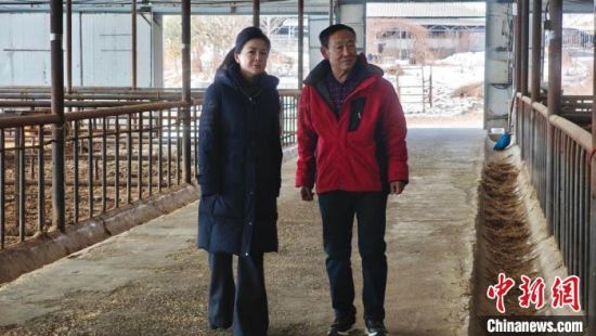呂愛輝(左)在吉林延邊的一家養(yǎng)殖場(chǎng)了解肉牛生長(zhǎng)情況!∈茉L者供圖