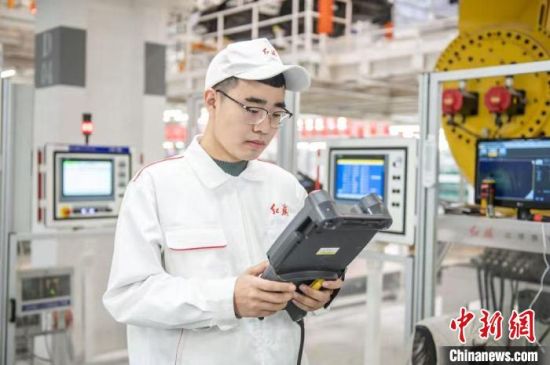 趙達(dá)在車間檢測(cè)設(shè)備。(資料圖) 中國一汽供圖