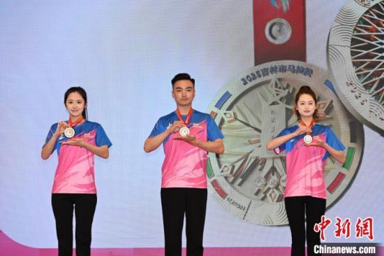 發(fā)布會上展示賽事獎牌。吉林市委宣傳部供圖
