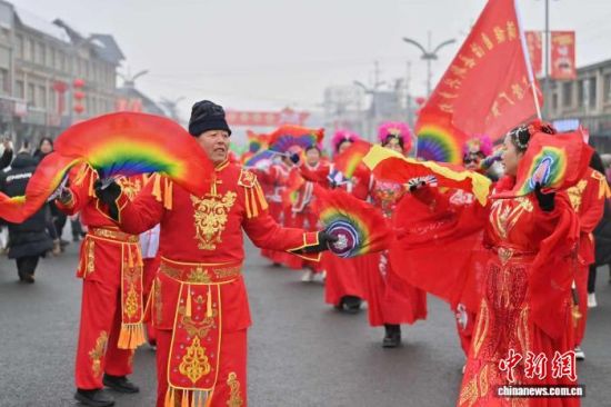 2月10日,民眾在吉林長春表演東北秧歌。趙瑩 攝