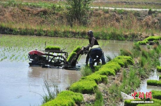 吉林農(nóng)民在播種水稻。(資料圖) 李彥國 攝