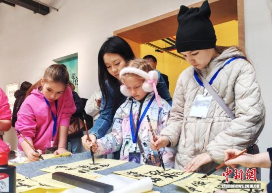 緹娜兩年前來到中國求學(xué),熟悉中國語言文字;顒又,她身兼主持人、講解員與翻譯,用中文為俄羅斯青少年介紹流程、解讀漢字含義,以中俄雙語助力兩國青少年交流,成為現(xiàn)場最忙碌的身影之一。